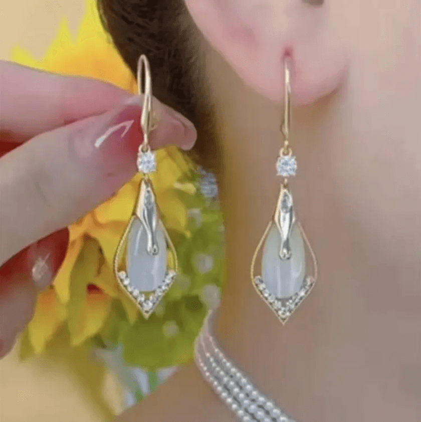Diamond Geometry Crystal Opal Tear Drop Dangling Earrings Jewelry for Women