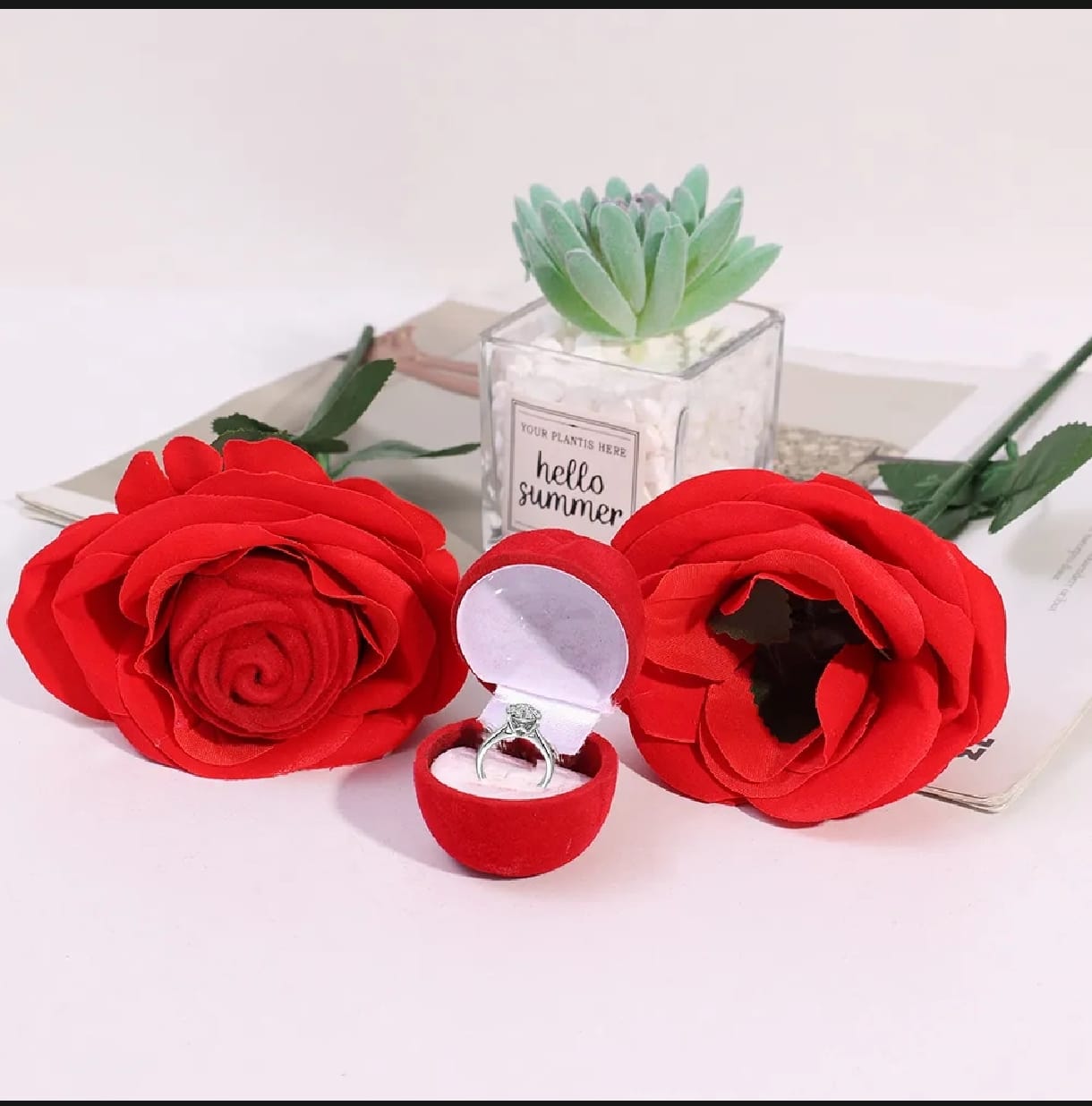 Velvet Rose Ring Box Holiday Gift Rose Petal Ring